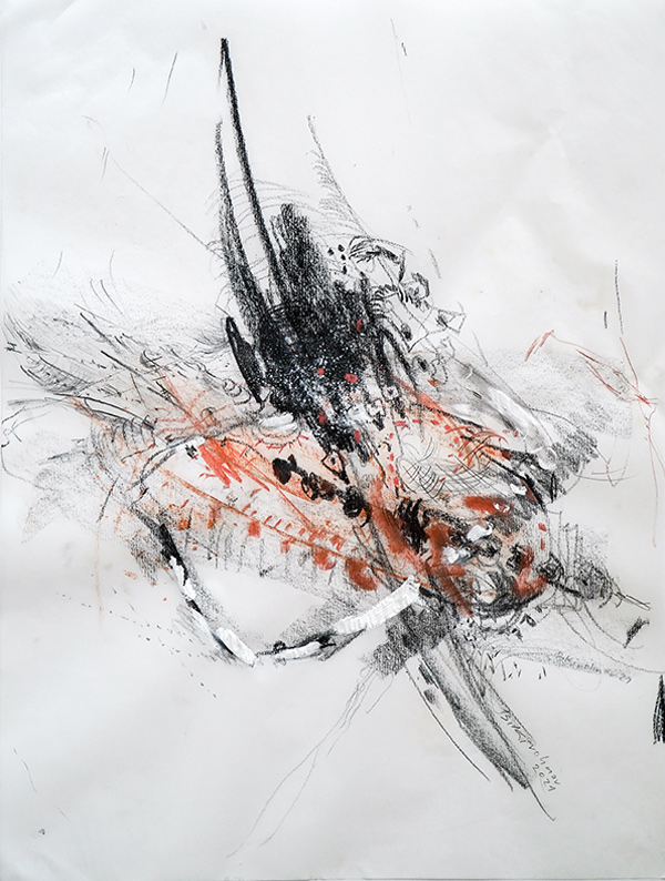 „Virulent 1", Kohle und Rötel, 36x29 cm, 2022